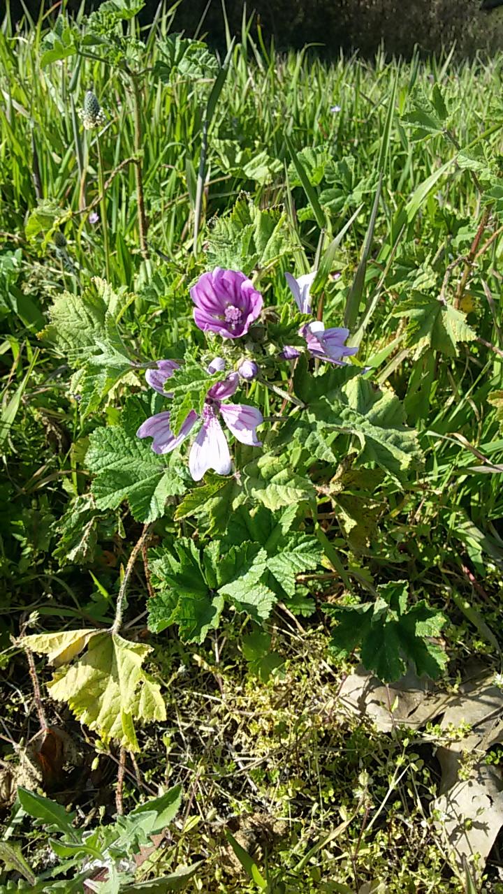 Juste au-delà, sur les bords d’un vignoble, c’est le tour du rose : la mauve, avec ses fleurs voyantes et gaies, et ses feuilles rondes qui nous rappellent un coeur grassouillet.