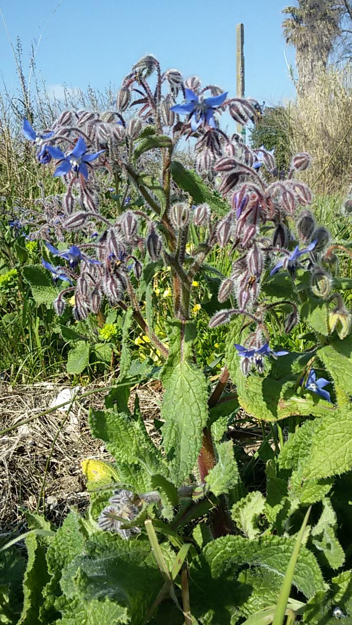Ce serait dommage, parce que un peu plus loin, là où la terre devient plus aride, voici une tache bleue mer : la bourrache !