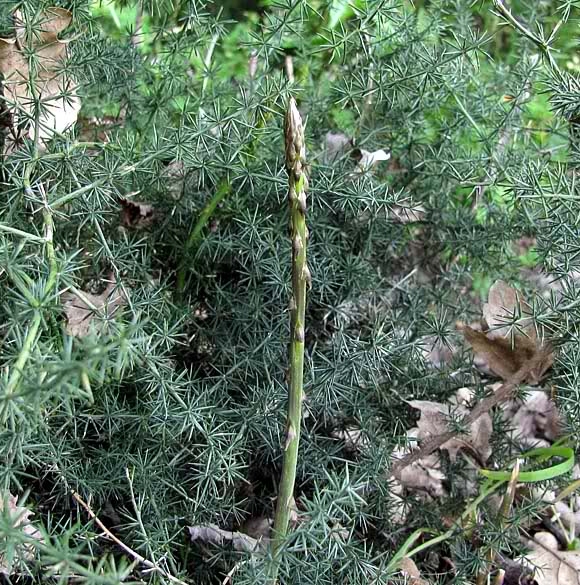 Après tant de marche nous méritons absolument une gourmandise...ouvrez bien les yeux, parce que, bien camouflés grâce à leur tendre couleur verte, se trouvent les jeunes pousses d’asperge, à mi-ombre parmi les arbustes.